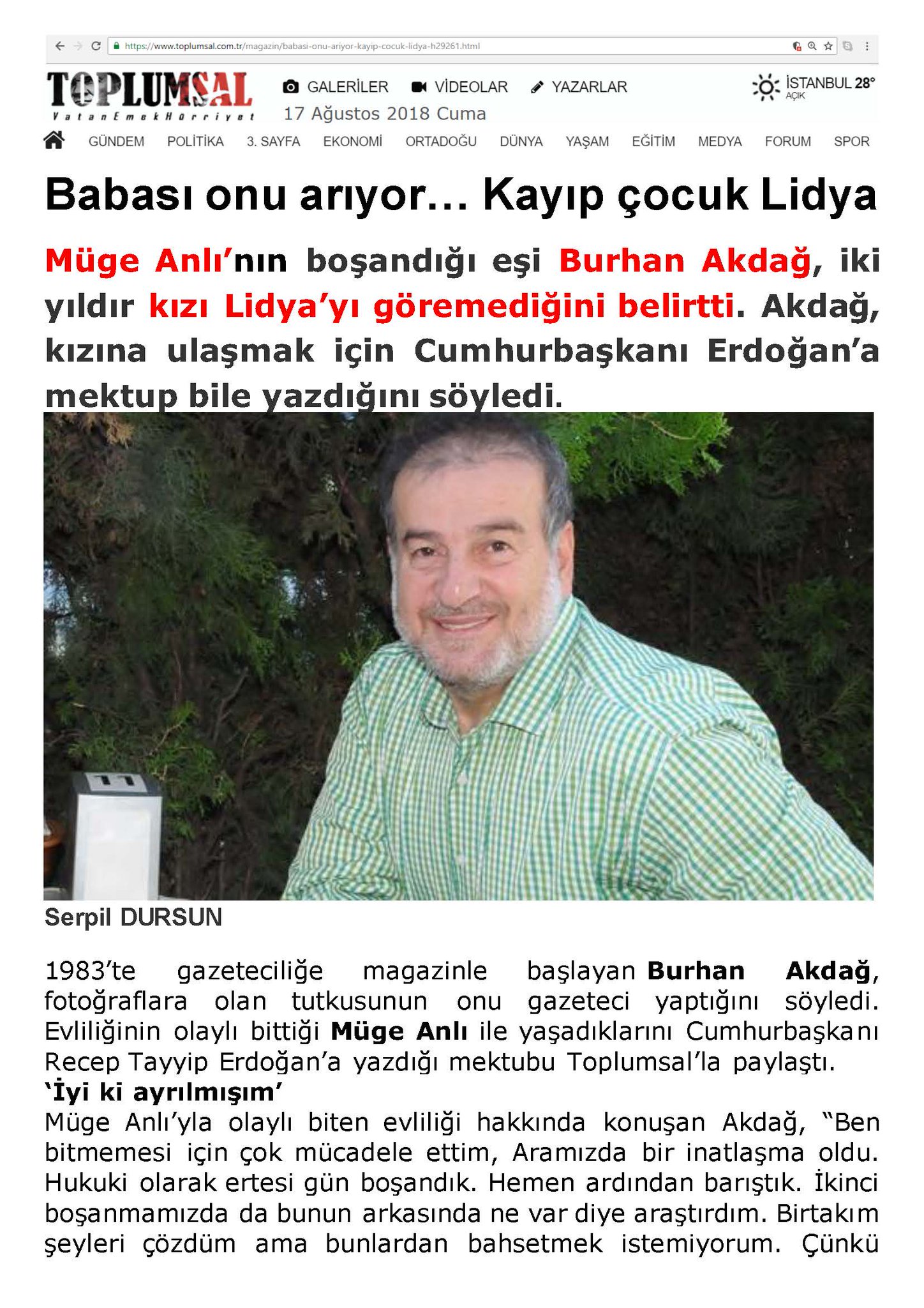 Müge anlı'yı cumhurbaşkanı recep tayyip erdoğan'a bir mektup yazarak şikayet eden burhan akdağ, kızı ile görüşmesine izin verilmediğini söyledi. Müge anlı, burhan akdağ ile evliliği sırasında 2002 yılında kızı lidya müge akdağ'ı. Ünlü televizyon sunucusu ve gazeteci müge anlı hakkında merak edilen tüm soruları haberimizde sizler için derledik. Ç iftin mutlu giden evliliği ilk meyvesini veriyor ve. 2 eylül günü hasret atv ekranlarında sona erdi.